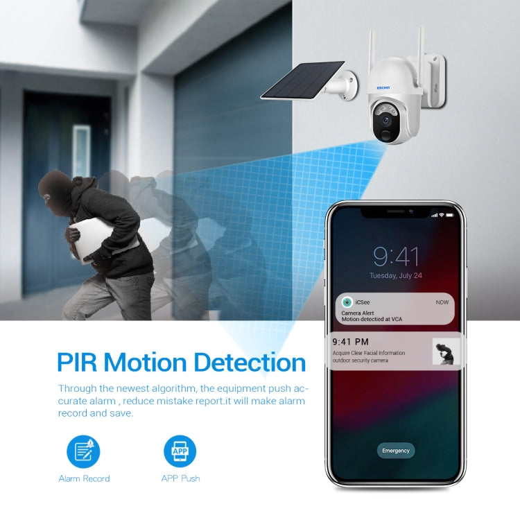 ESCAM QF103 3MP Cloud Storage PT WIFI PIR Alarm IP Camera with Solar Panel Battery Support Full Color Night Vision & Two Way Audio, QF103