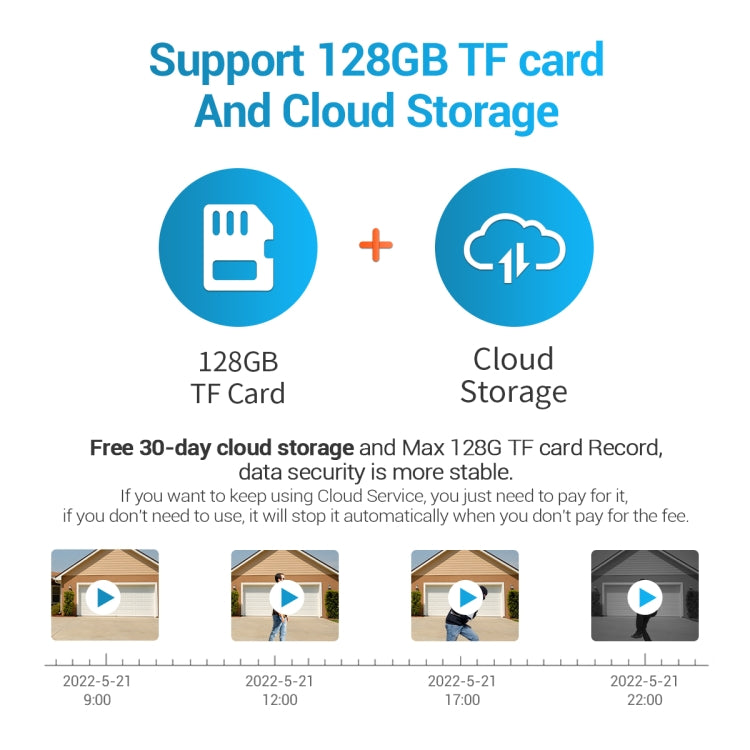 7. Support cloud storage and 128G TF card local storage