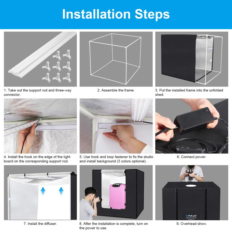 PULUZ 80cm Folding Portable 72W White Light Photo Lighting Studio Shooting Tent Box Kit with 3 Colors Black / White / Orange Backdrops, 80cm Box(US), 80cm Box(EU), 80cm Box(AU), 80cm Box(UK)