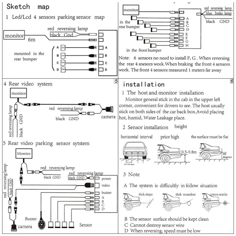 Sistema de alarma de estacionamiento con monitor LED y zumbador de marcha atrás PZ-300-8 con 4 sensores delanteros de 7 m y 4 sensores traseros de 2,5 m.