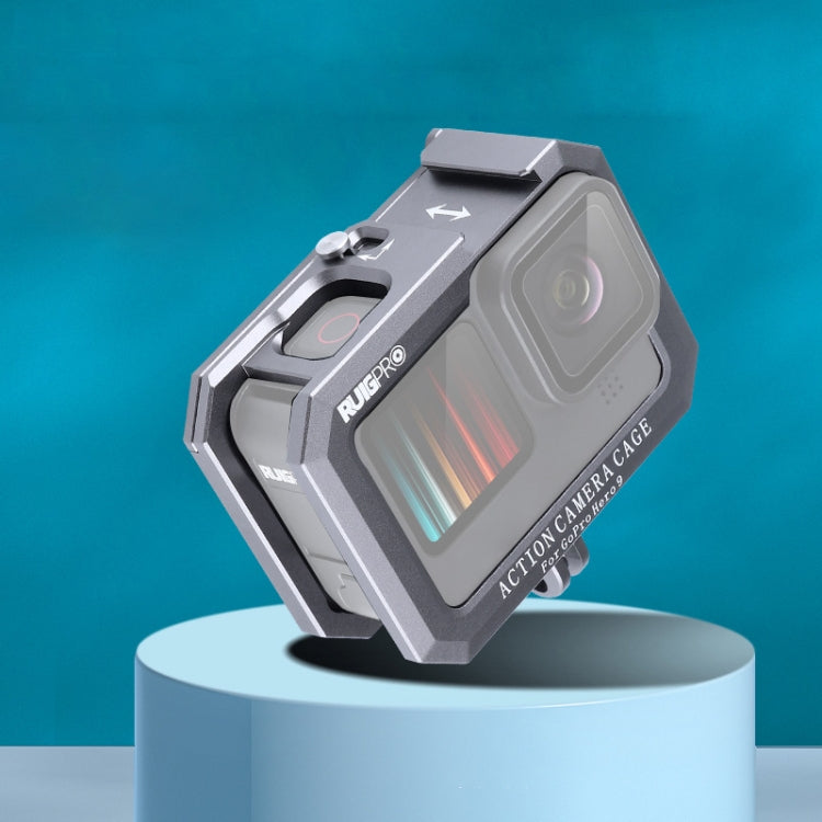 RUIGPRO for GoPro HERO10 Black / HERO9 Black Metal Border Frame Mount Protective Cage with Dual Cold Shoes Base, Silver Grey