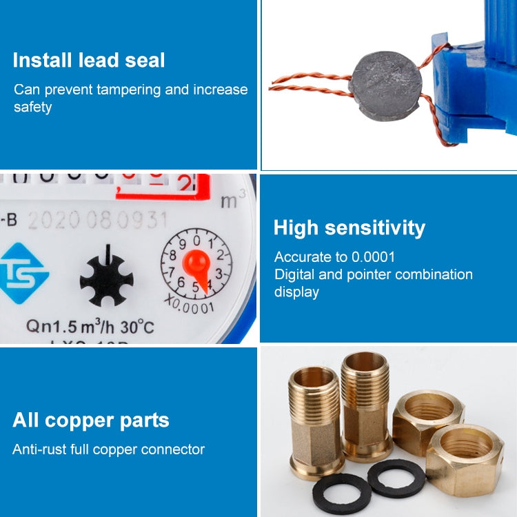 Medidor de agua fría mecánico de ala rotatoria para uso doméstico TS-S300E, con indicador digital de alta precisión y medidor de agua combinado.