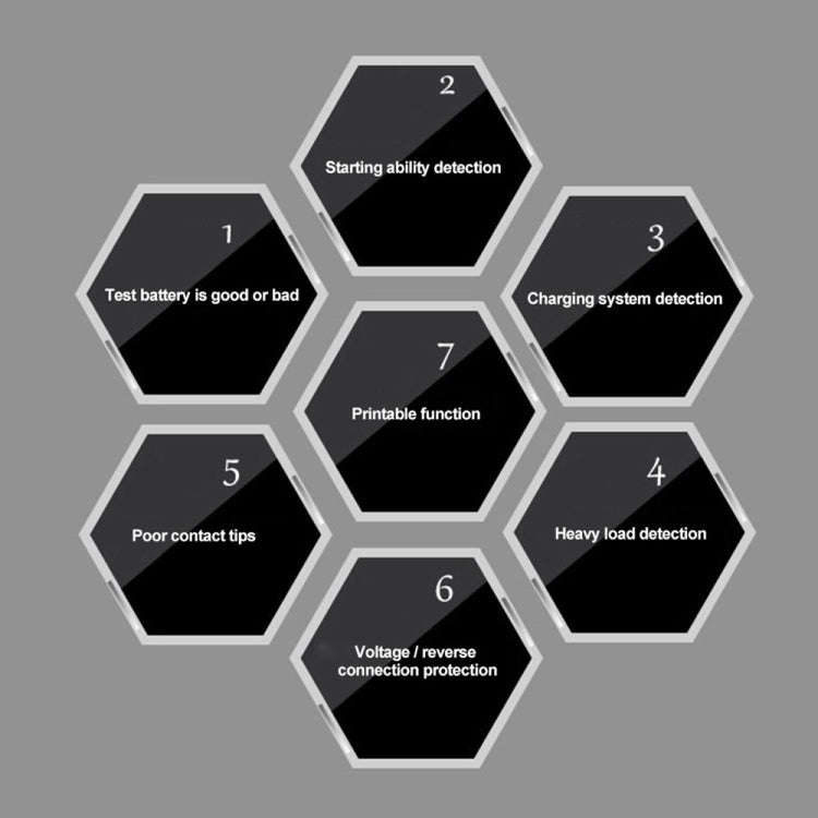 1. Battery test: cold cranking amps, battery resistance, voltage, life analysis.
