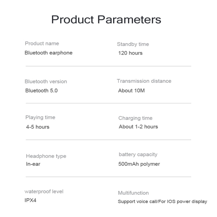 16. Battery capacity: headset (50mAh), charging box (500mAh)
