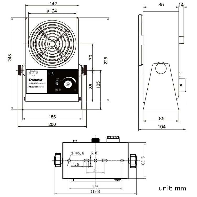 3. The strong wind speed can quickly eliminate static electricity of the product, and the air supply angle can be adjusted through the bracket